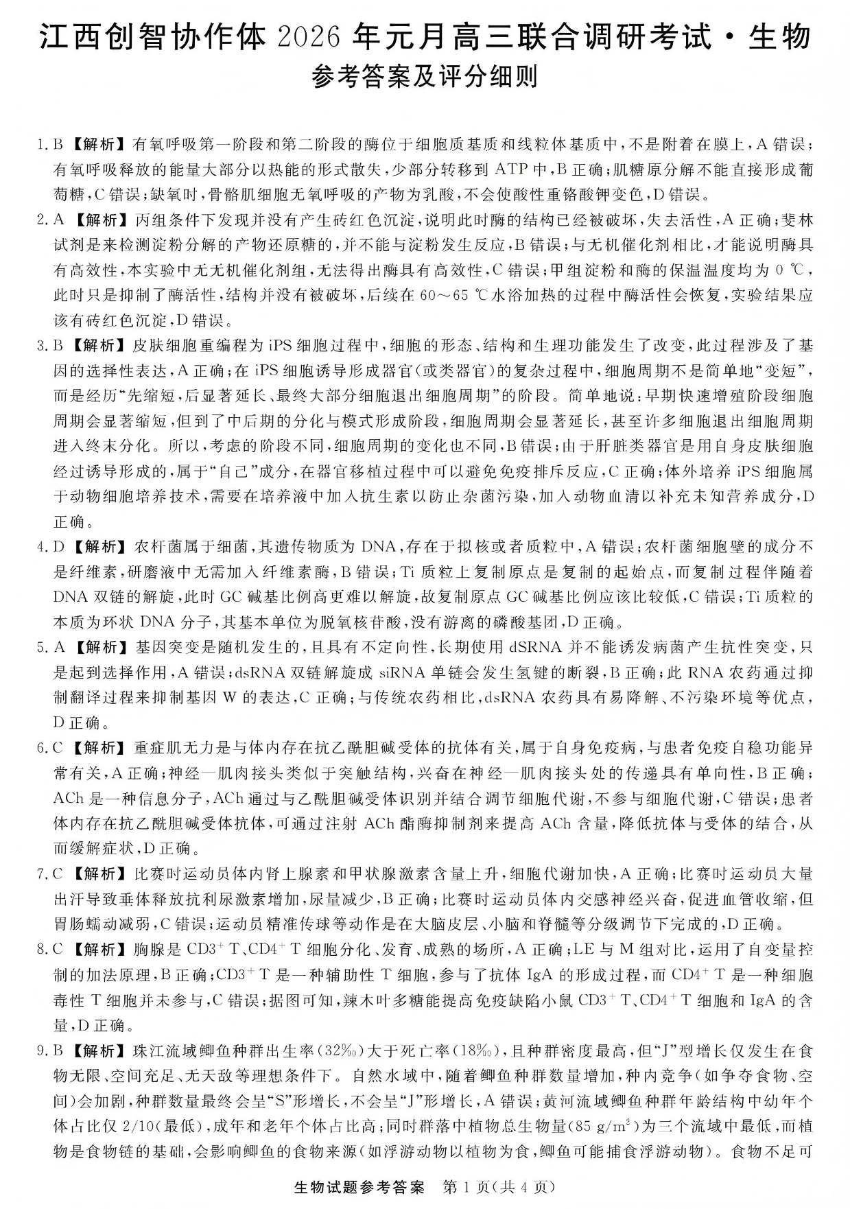 江西创智协作体2026年元月高三联合调研考试 生物答案.pdf