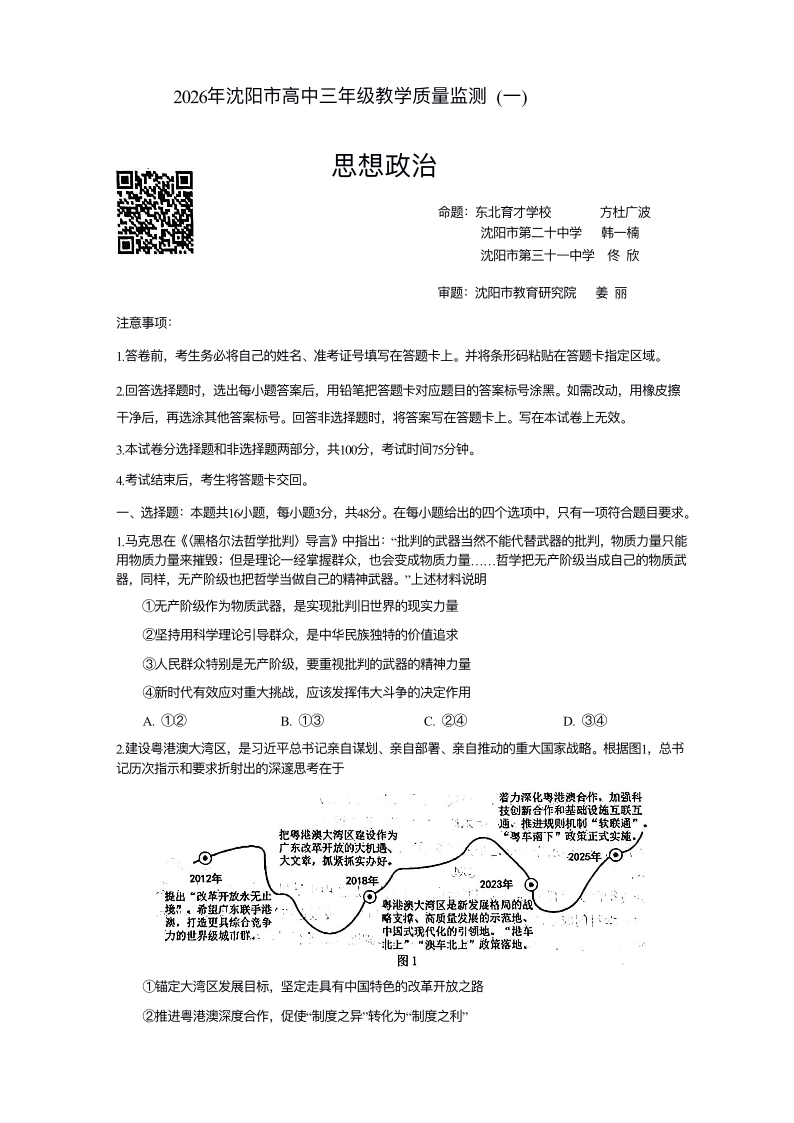 2026年沈阳市高中三年级教学质量监测(一)政治.pdf