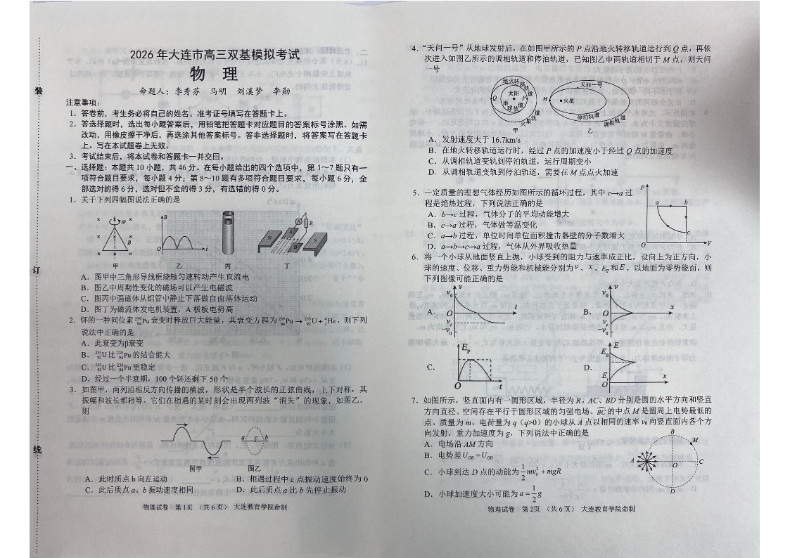 2026年大连市高三双基模拟考试 物理.pdf