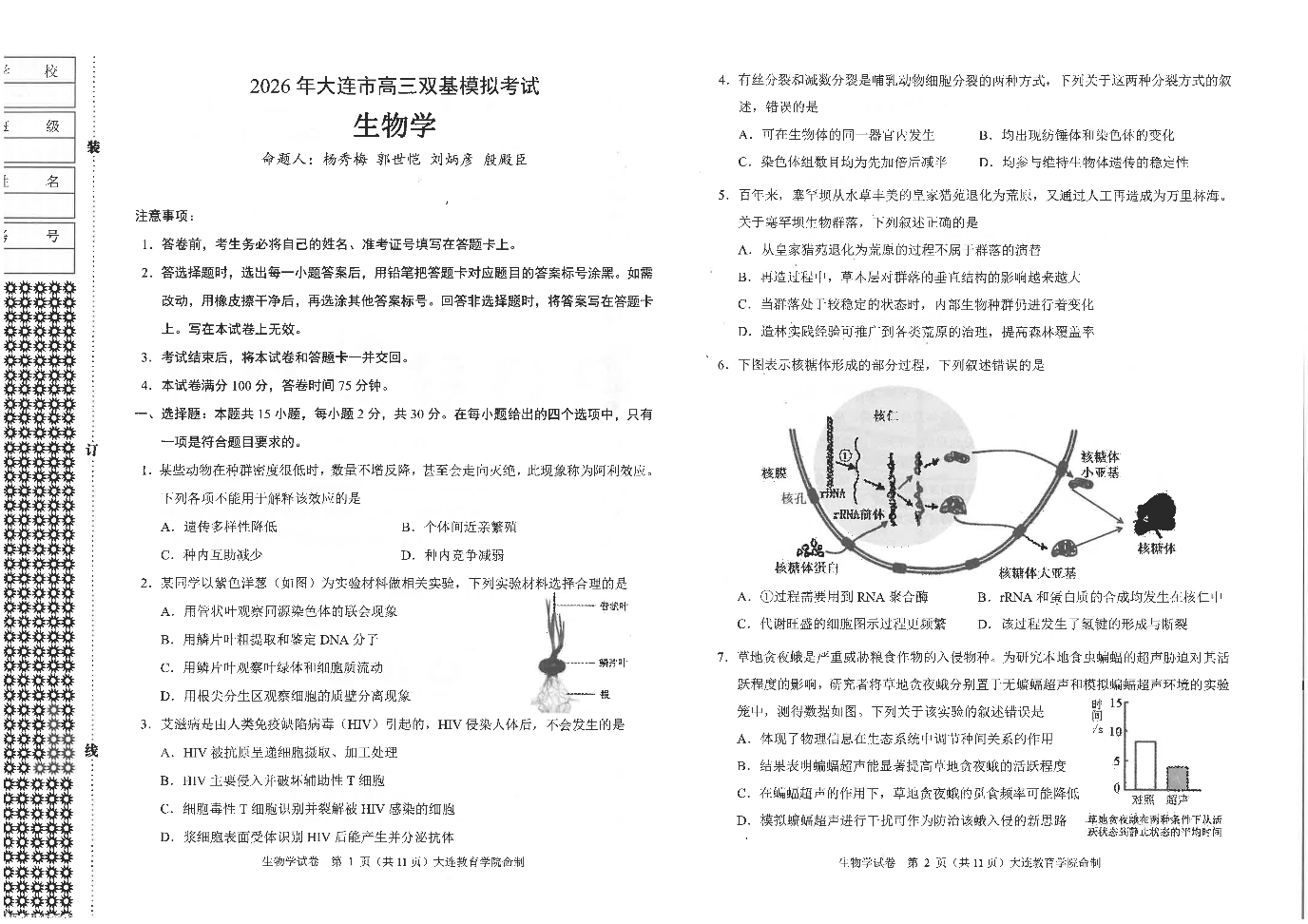 2026年大连市高三双基模拟考试 生物.pdf