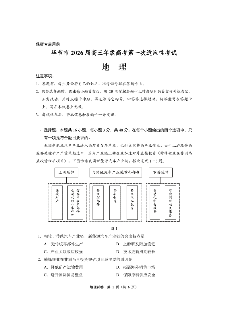 贵州省毕节市2026届高三年级高考第一次适应性考试 地理.pdf