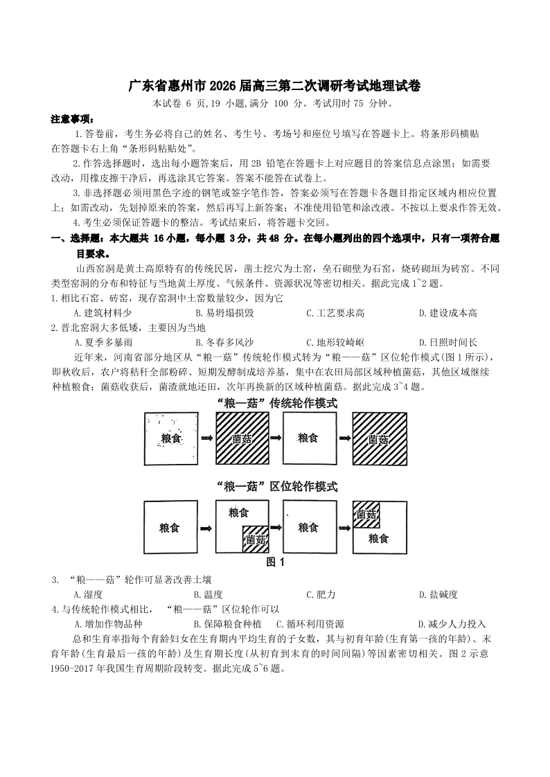 广东省惠州市2026届高三第二次调研考试 地理试卷(含答案).pdf