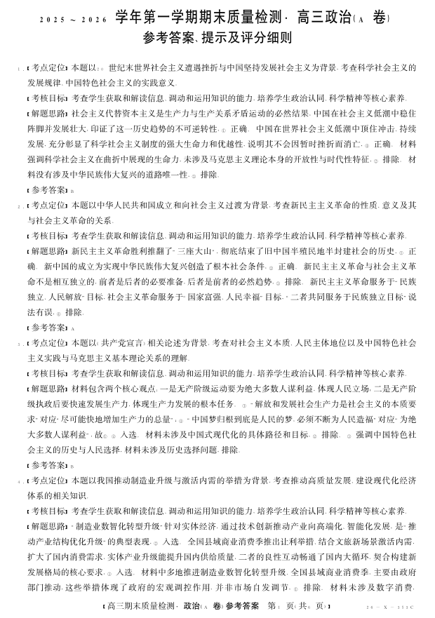 安徽省县域合作共享联盟2025-2026学年高三上学期1月期末质量检测-政治(A卷)答案.pdf