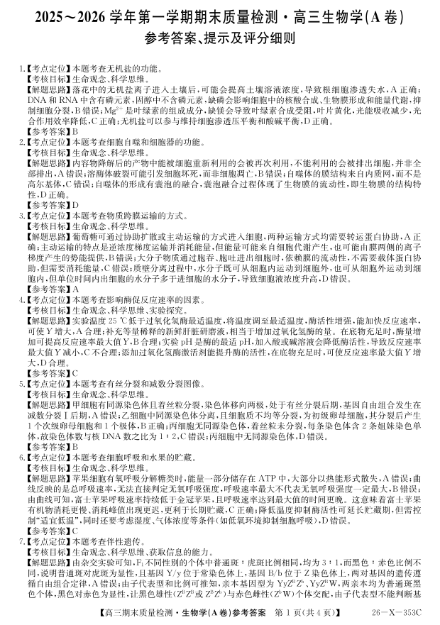 安徽省县域合作共享联盟2025-2026学年高三上学期1月期末质量检测-生物(A卷)答案.pdf