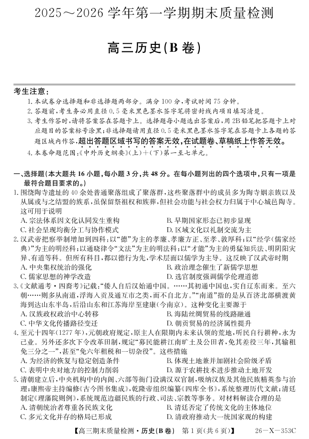 安徽省县域合作共享联盟2025-2026学年高三上学期1月期末质量检测-历史(B卷).pdf