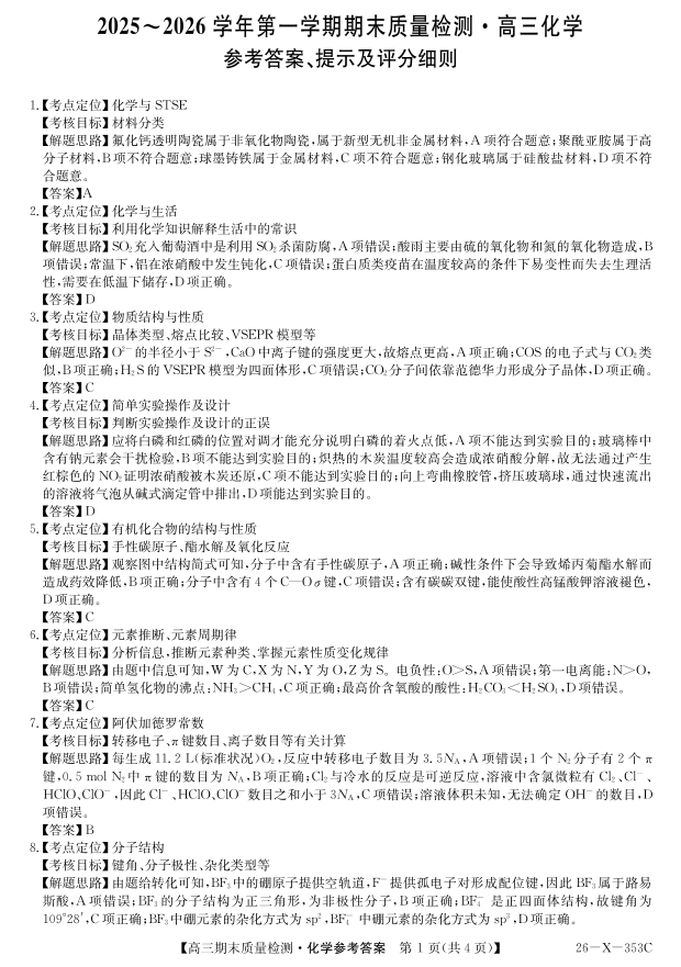 安徽省县域合作共享联盟2025-2026学年高三上学期1月期末质量检测-化学答案.pdf