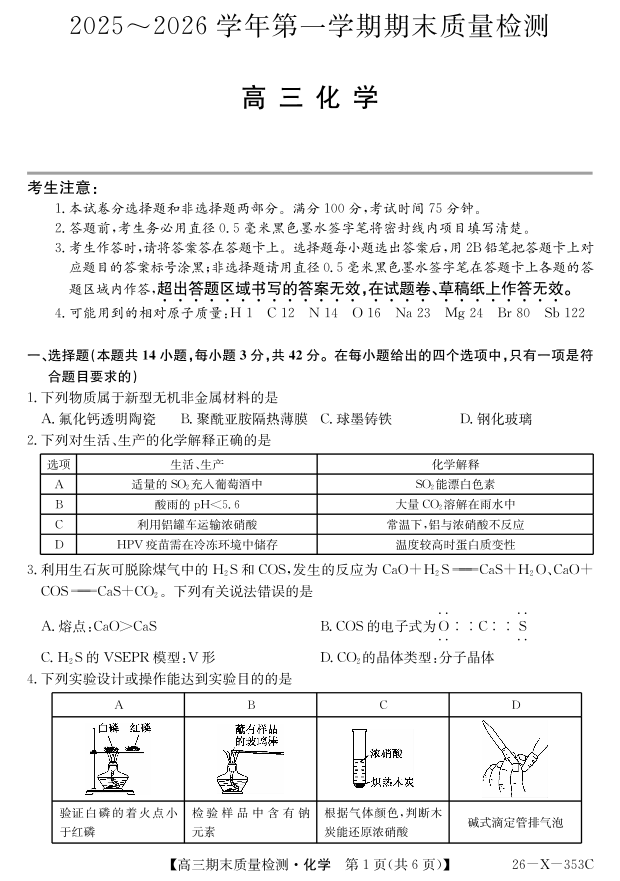 安徽省县域合作共享联盟2025-2026学年高三上学期1月期末质量检测-化学.pdf