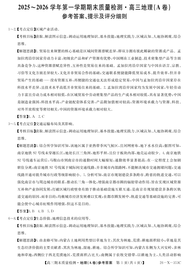 安徽省县域合作共享联盟2025-2026学年高三上学期1月期末质量检测-地理(A卷)答案.pdf