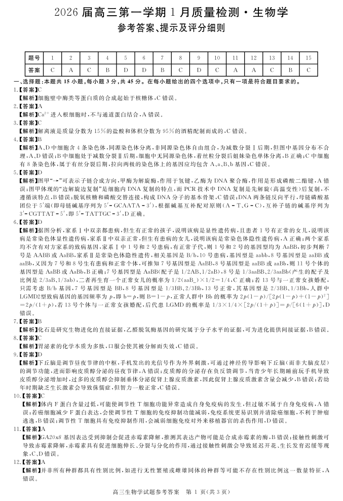安徽省华师联盟2025-2026学年高三上学期1月质量检测-生物答案.pdf