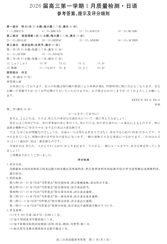 安徽省华师联盟2025-2026学年高三上学期1月质量检测-日语答案.pdf