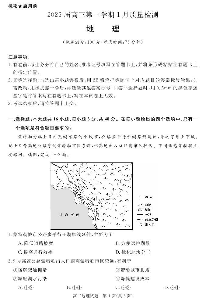 安徽省华师联盟2025-2026学年高三上学期1月质量检测-地理.pdf