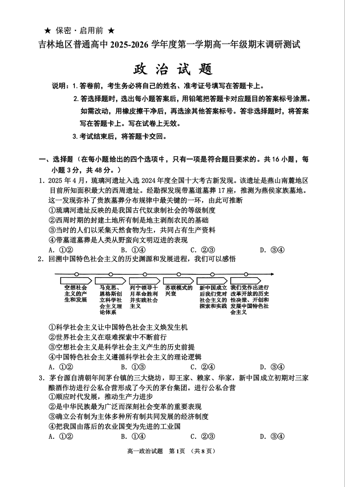 吉林省吉林市2025-2026学年高一上学期期末考试 政治.doc