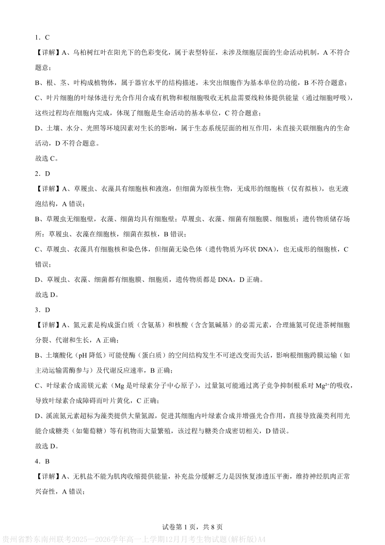 黔东南州2025-2026学年高一上学期12月检测 生物答案.pdf