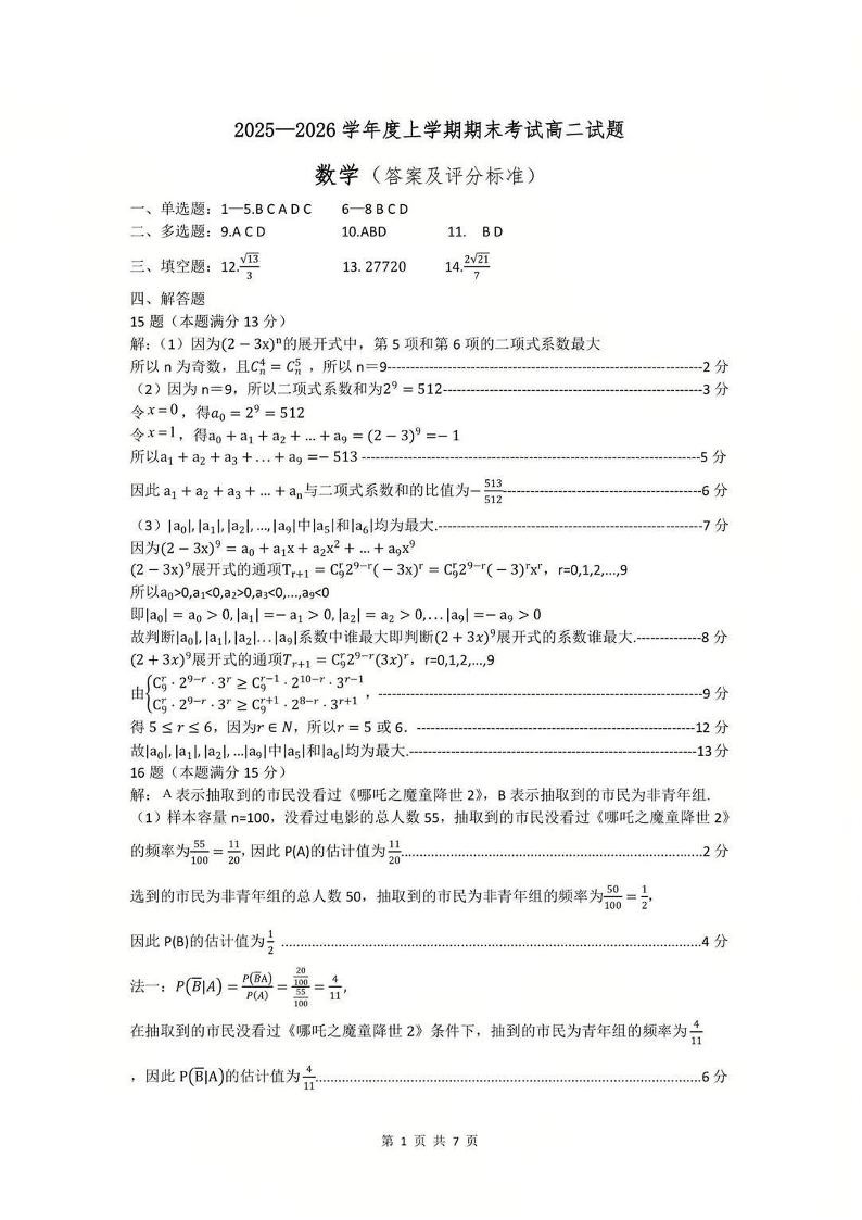 数学答案-辽宁重点中学协作校2025-2026上高二期末.pdf