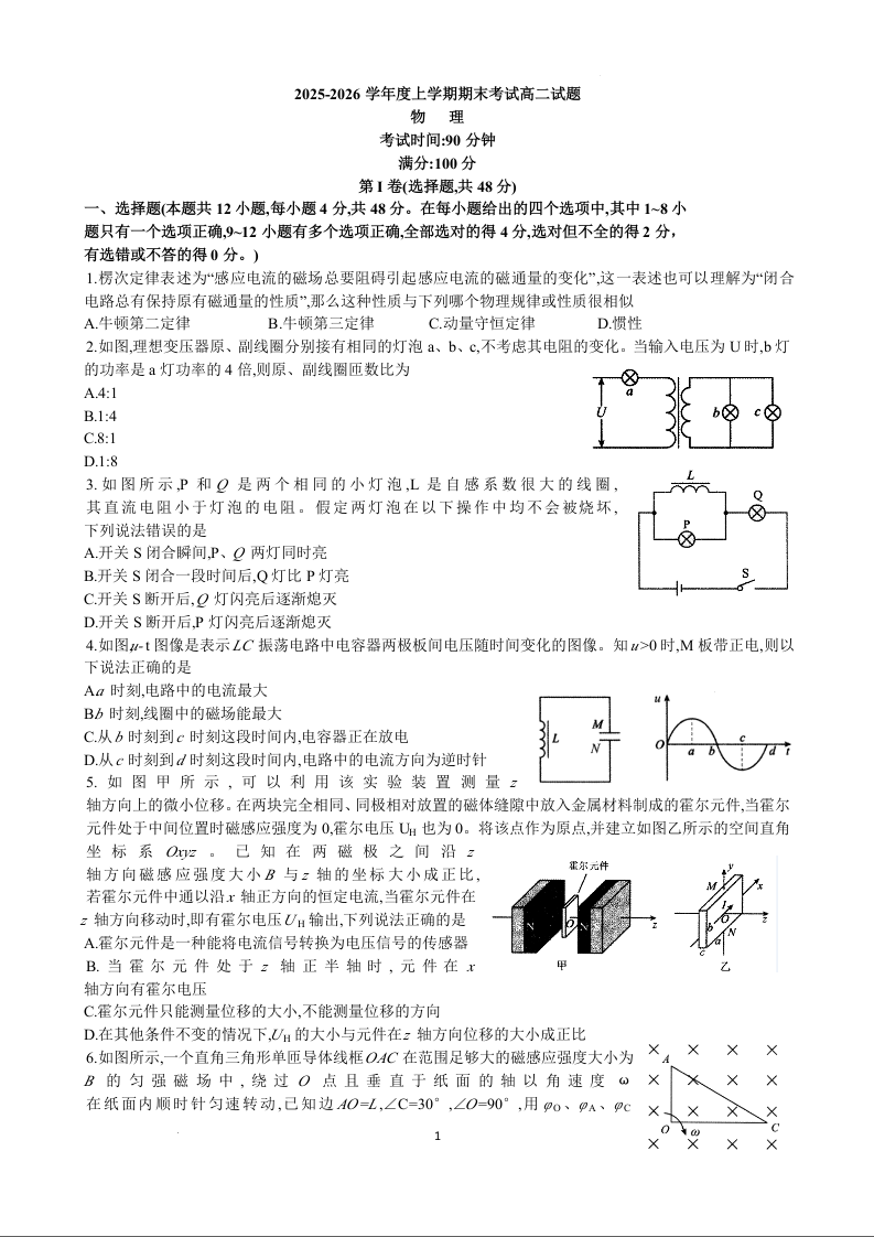 物理试卷-辽宁重点中学协作校2025-2026上高二期末.docx