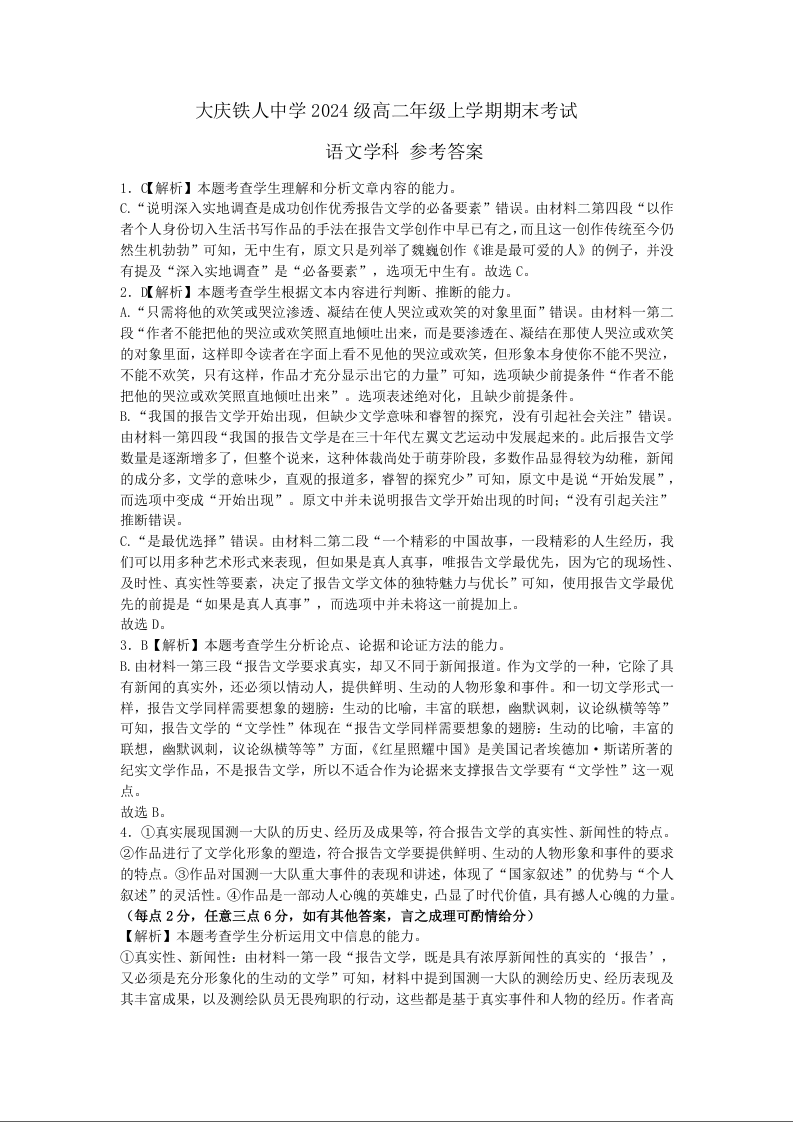 大庆铁人中学2025-2026学年高二上学期期末考试 语文答案.docx