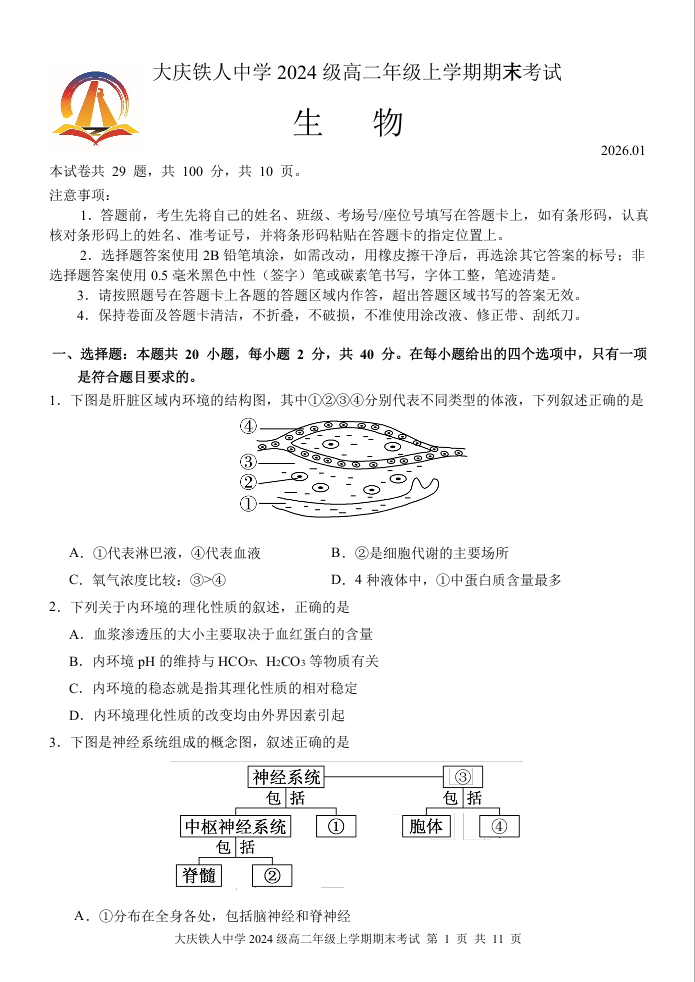 大庆铁人中学2025-2026学年高二上学期期末考试 生物.docx