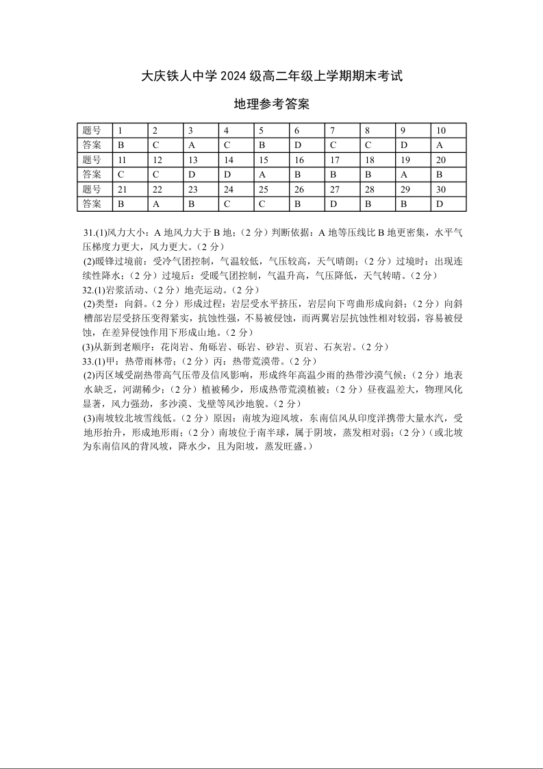 大庆铁人中学2025-2026学年高二上学期期末考试 地理答案.docx
