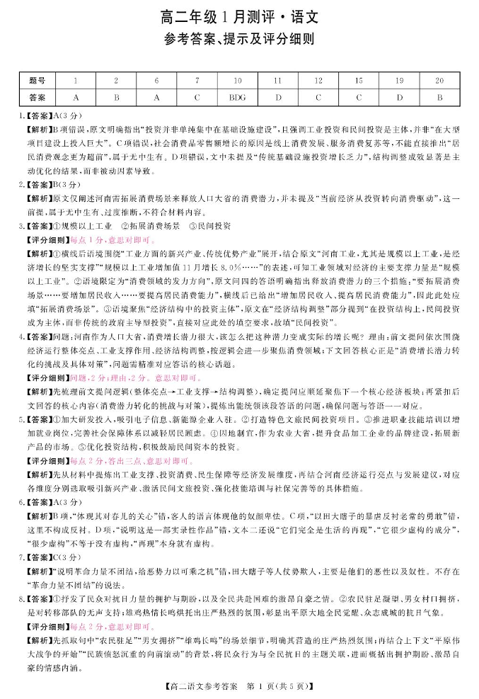 河南省周口市重点高中2025-2026学年高二年级1月测评 语文答案.pdf