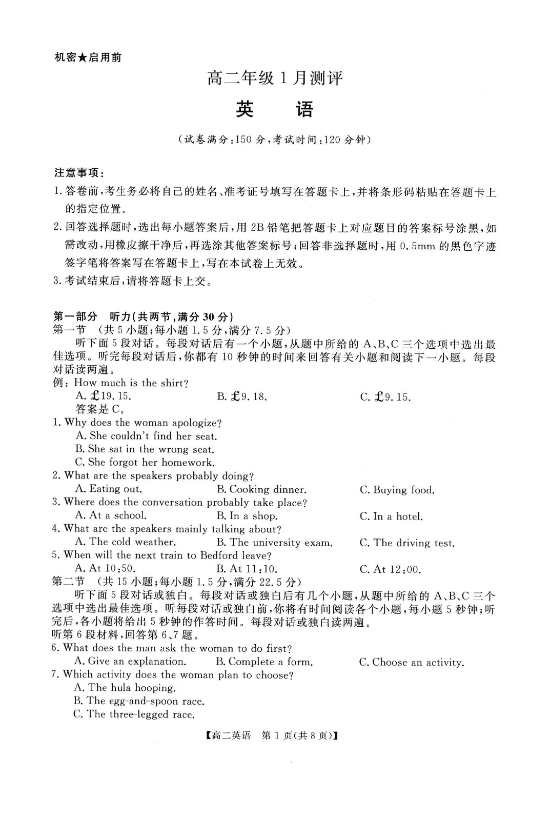 河南省周口市重点高中2025-2026学年高二年级1月测评 英语.pdf