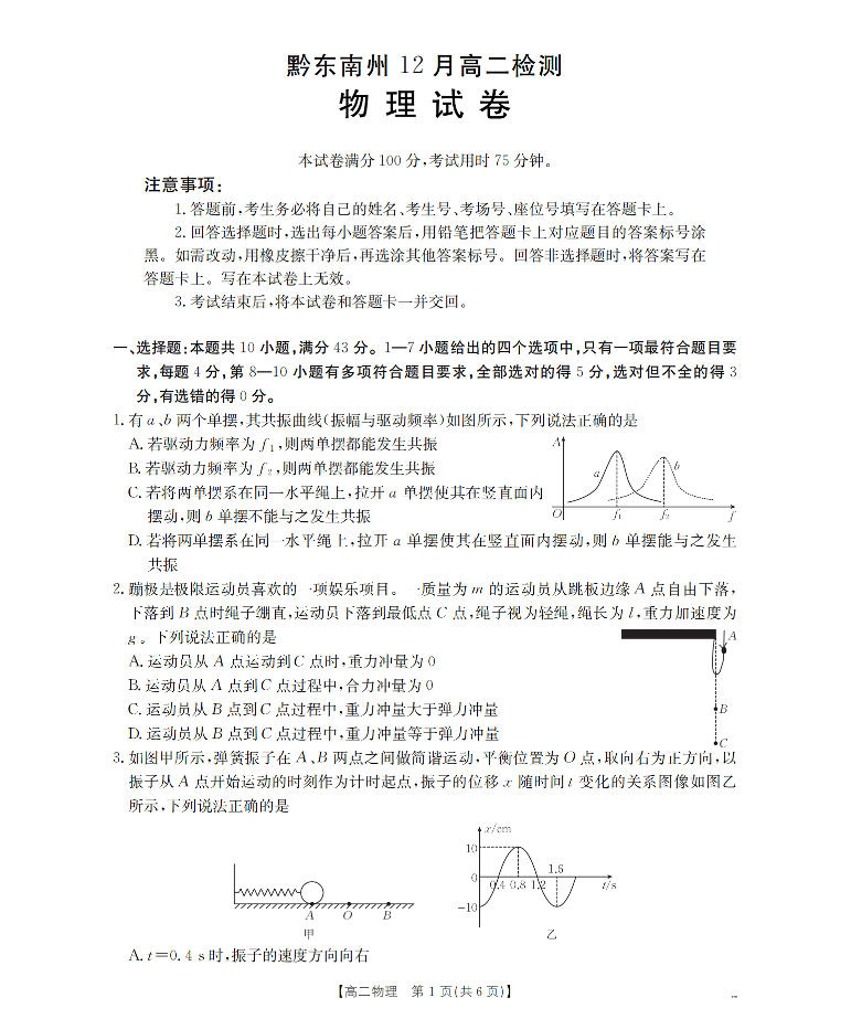 黔东南州2025-2026学年高二上学期12月检测 物理.pdf
