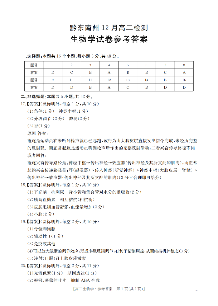 黔东南州2025-2026学年高二上学期12月检测 生物答案.pdf