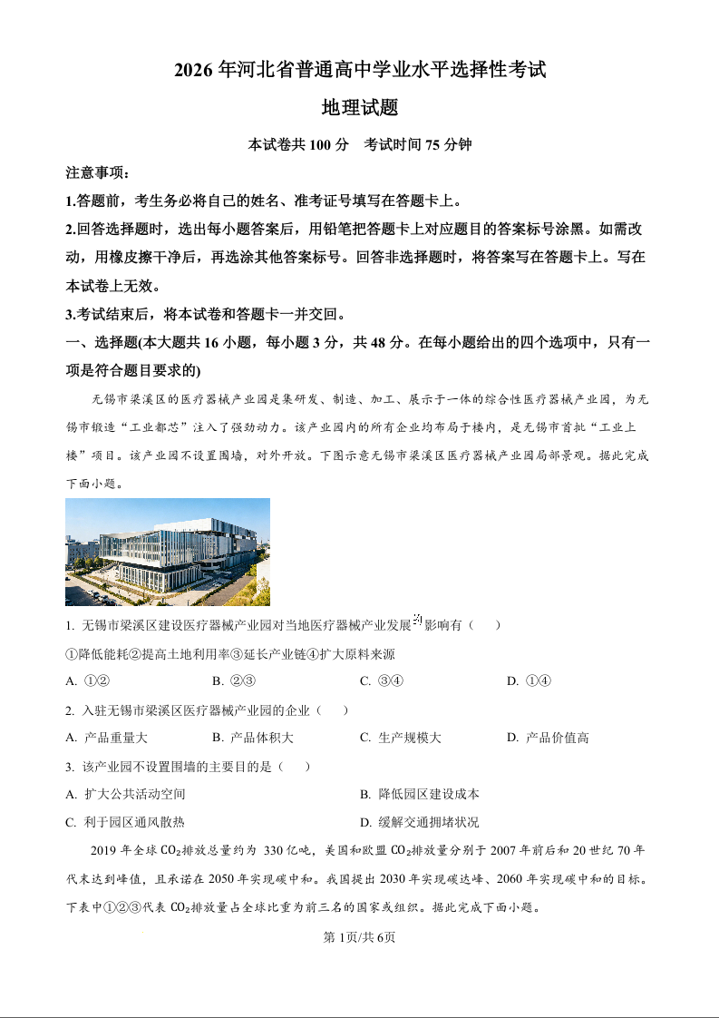 河北省邢台市名校协作体2026届高三年级上学期模拟考试 地理.docx