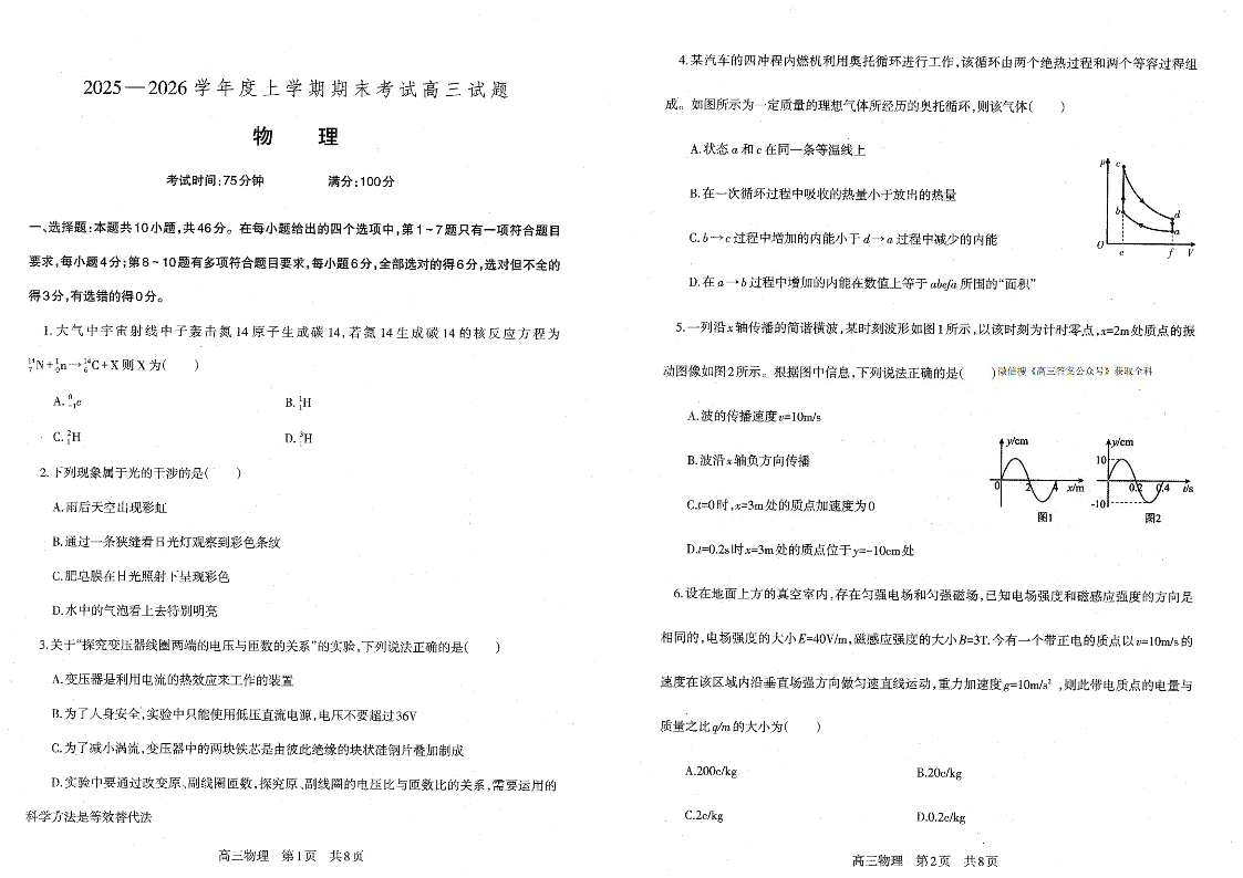 辽宁省协作校2025-2026学年度高三上学期期末考试 物理.pdf