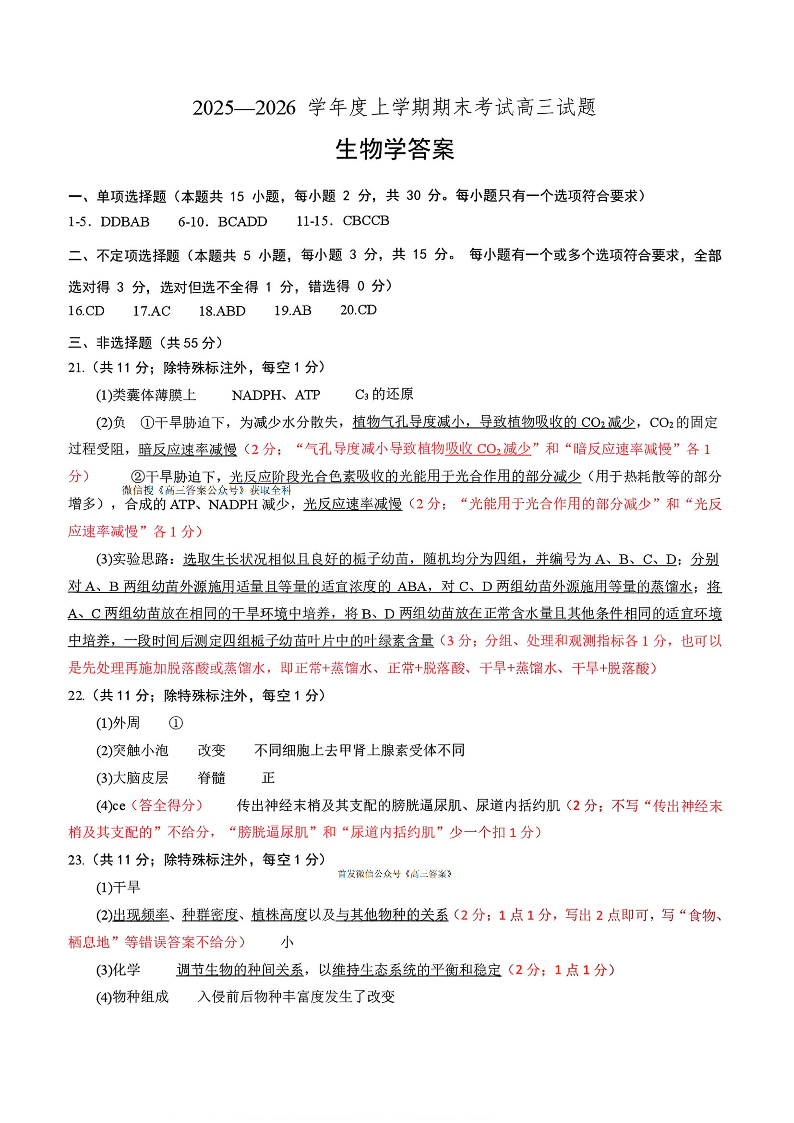 辽宁省协作校2025-2026学年度高三上学期期末考试 生物答案.pdf