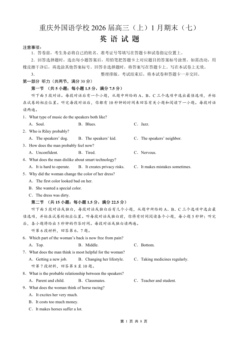 重庆外国语学校2026届高三(上)1月期末(七)英语.pdf