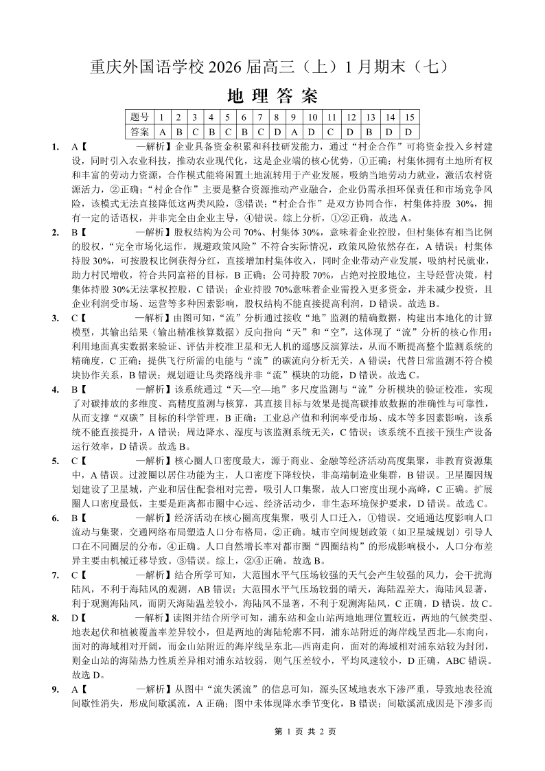 重庆外国语学校2026届高三(上)1月期末(七)地理答案.pdf