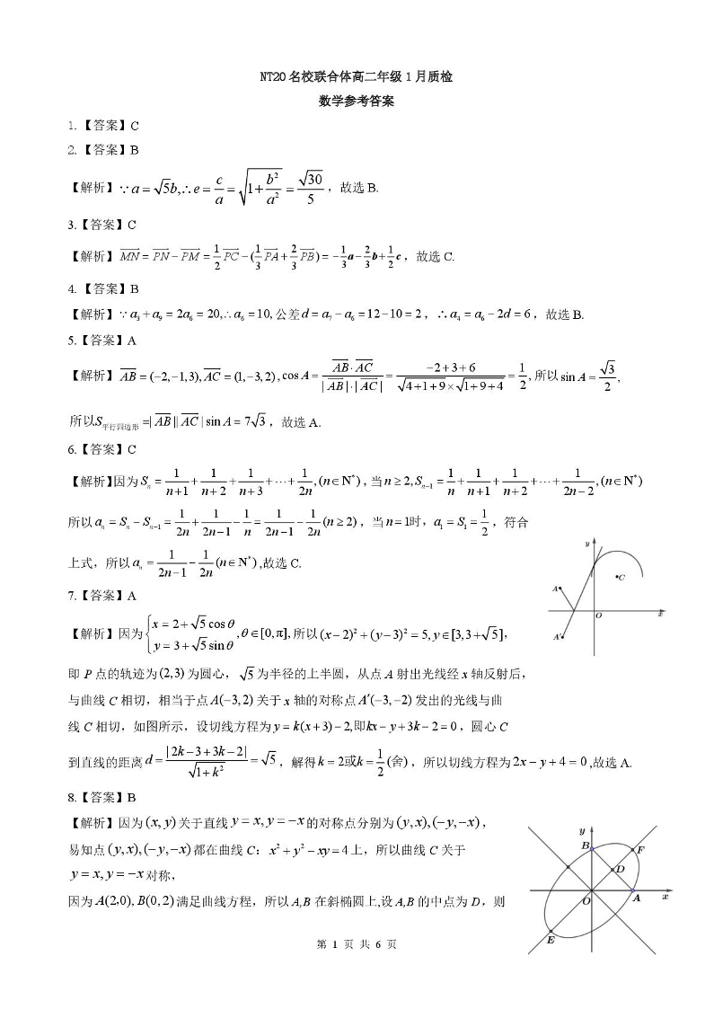 河北省邯郸市NT20名校联合体2025-2026学年高二年级1月质检 数学答案.pdf