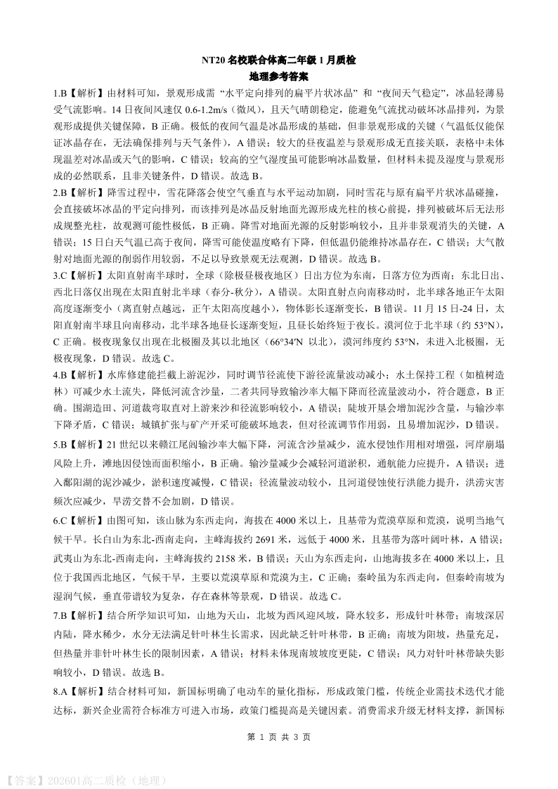河北省邯郸市NT20名校联合体2025-2026学年高二年级1月质检 地理答案.pdf