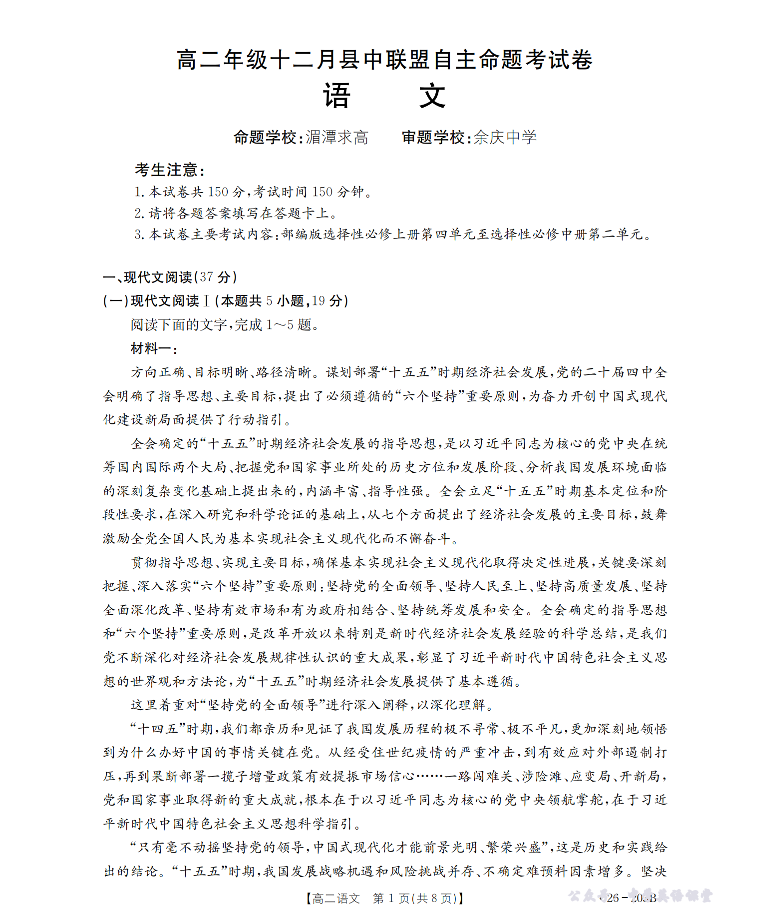 贵州省2025-2026学年高二上学期十二月县中联盟自主命题考试卷 语文.pdf