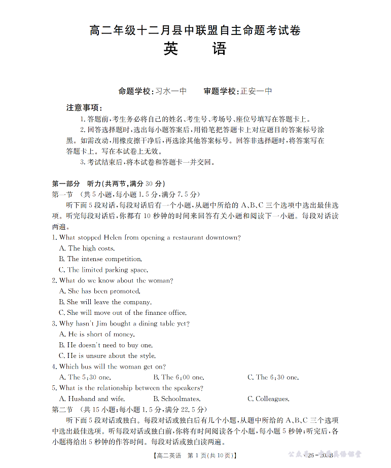 贵州省2025-2026学年高二上学期十二月县中联盟自主命题考试卷 英语.pdf