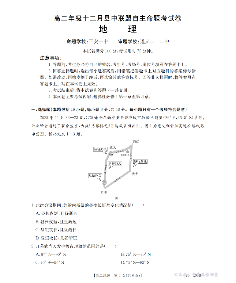 贵州省2025-2026学年高二上学期十二月县中联盟自主命题考试卷 地理.pdf