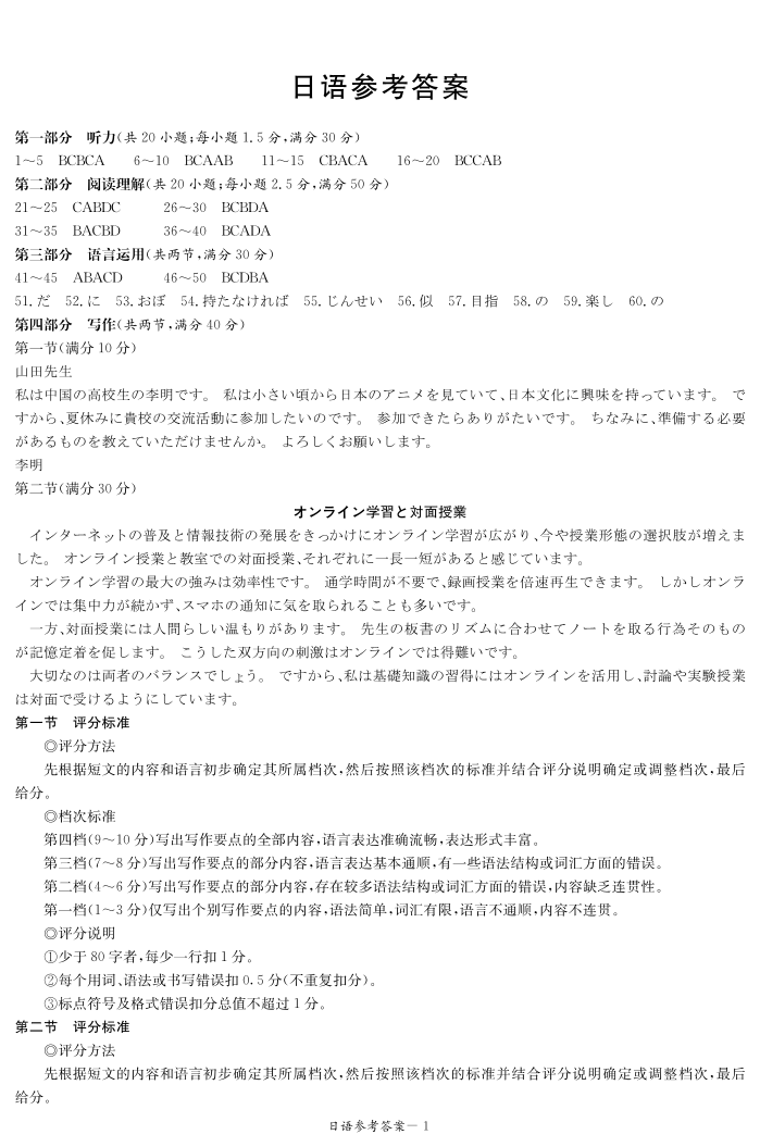 山西省2026届高三供题训练(一)日语参考答案.pdf