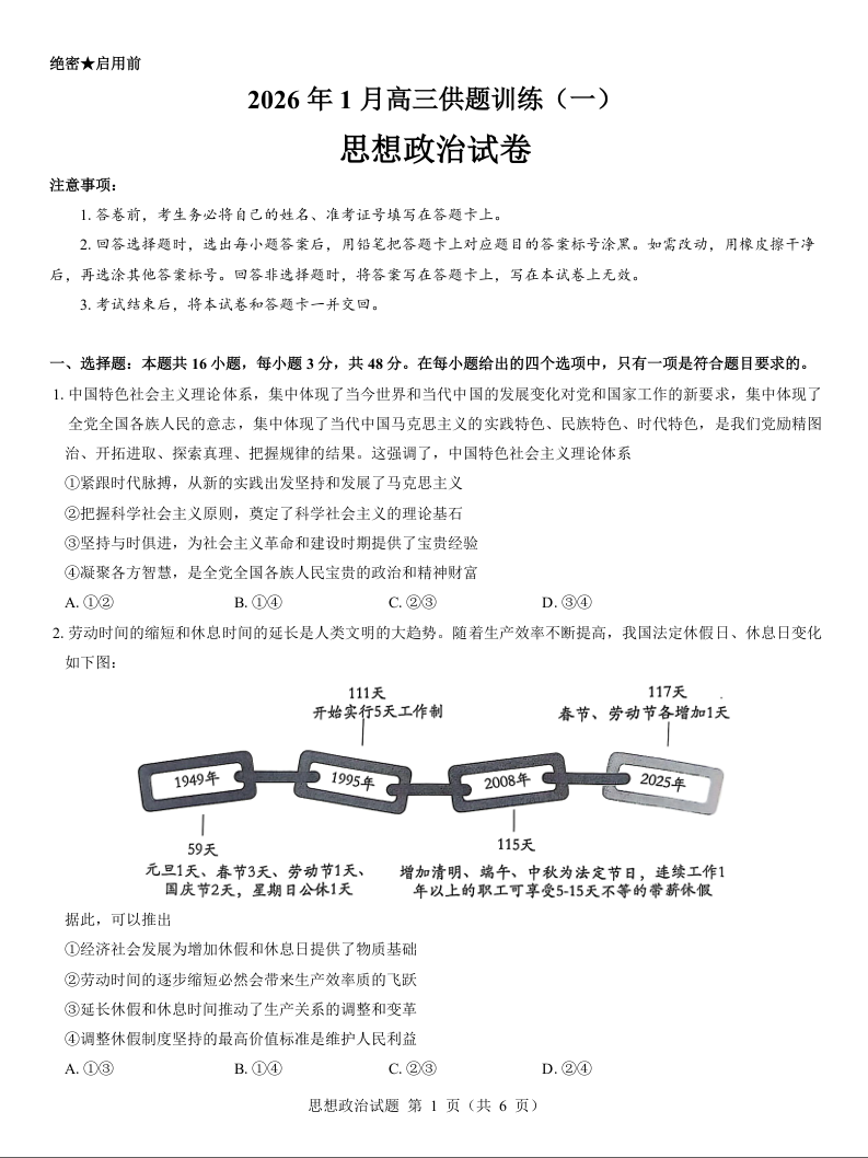 山西省2026届高三供题训练(一)政治试题.docx