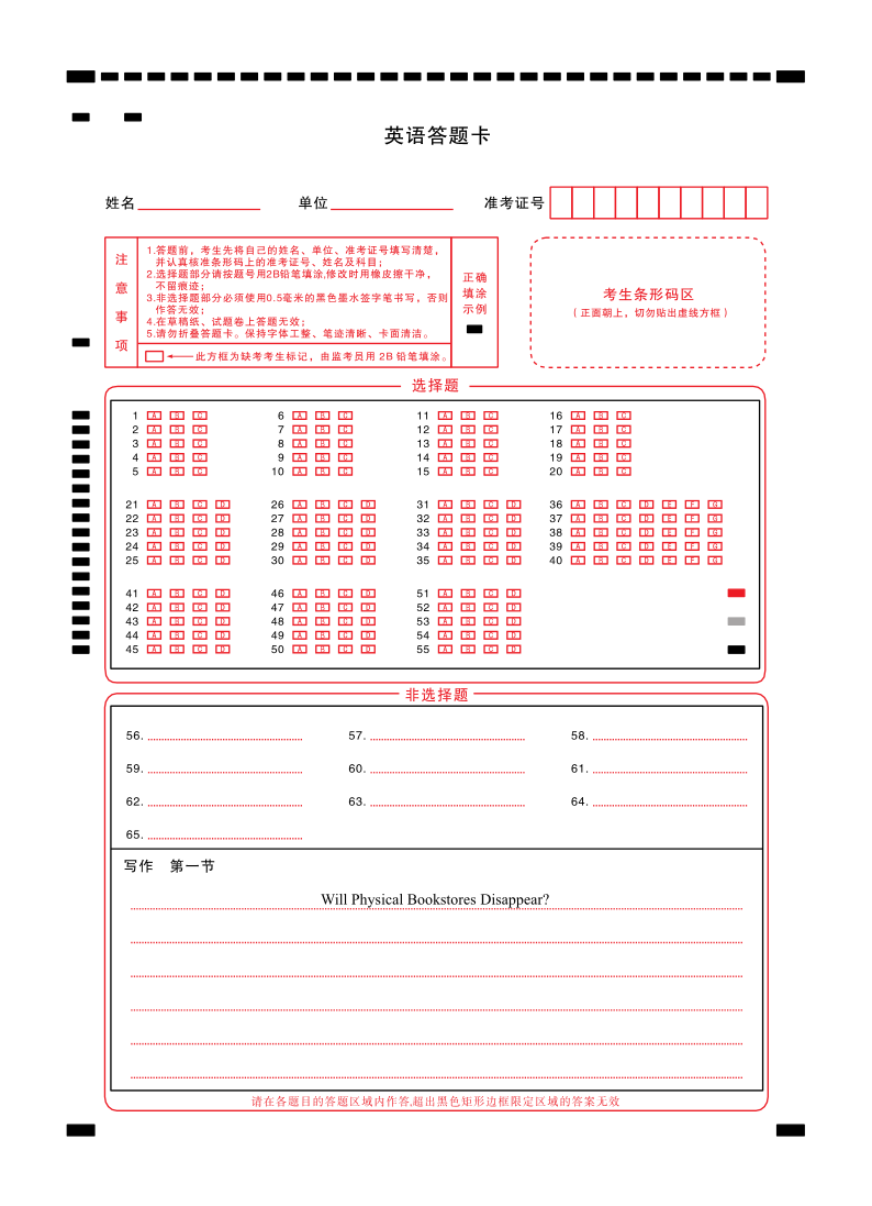 陕西省2026届高三供题训练(一)英语答题卡.pdf