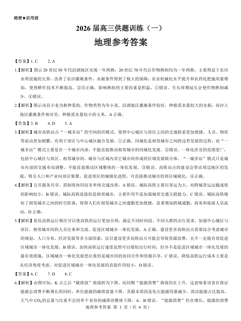 宁夏2026届高三供题训练(一)地理参考答案.docx
