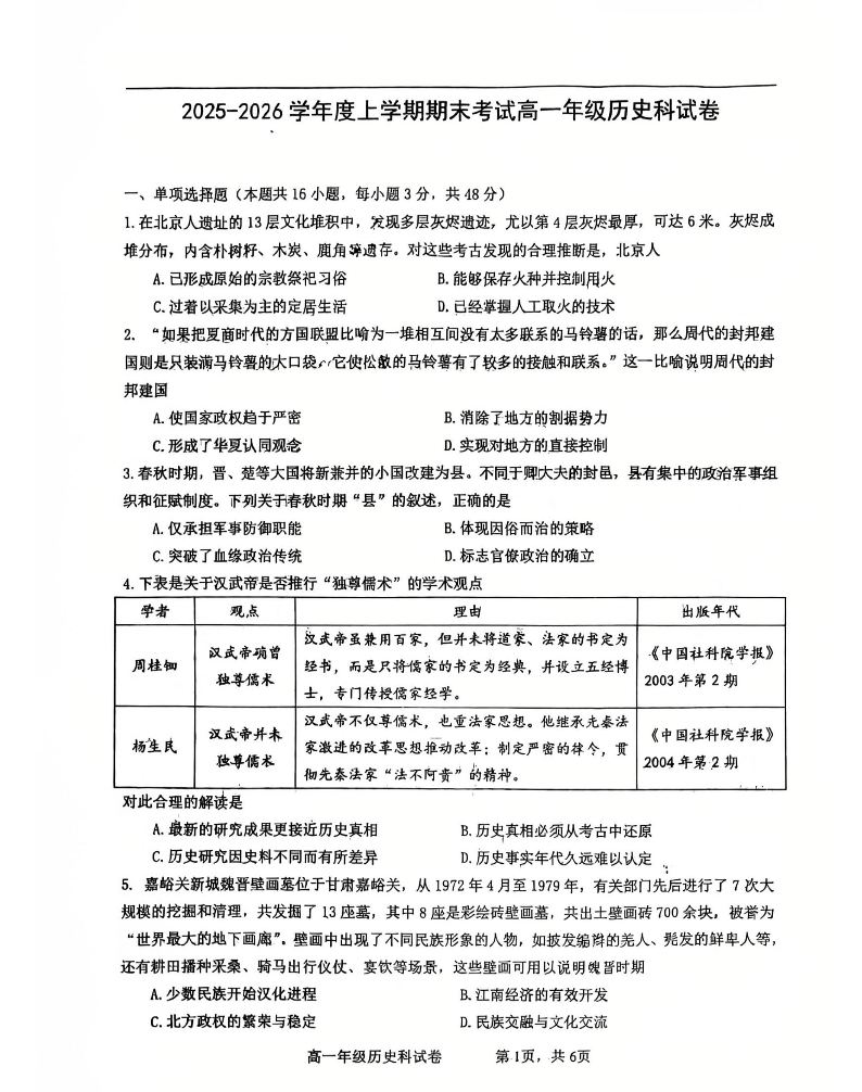 辽宁省五校协作体2025-2026学年度高一年级上学期期末考试 历史试题(含答案).pdf