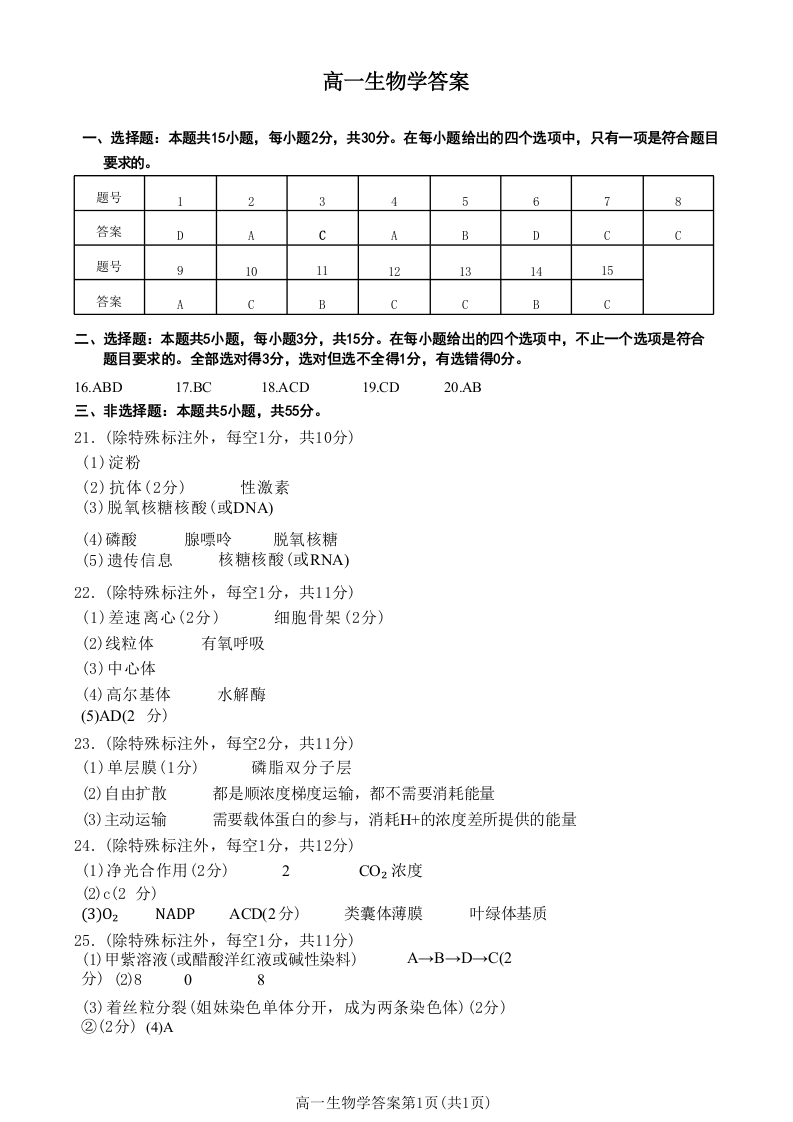 吉林省普通高中友好学校联合体2025-2026学年高一上学期期末考试 生物答案.docx