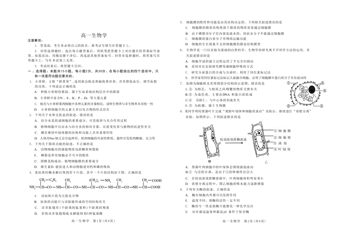 吉林省普通高中友好学校联合体2025-2026学年高一上学期期末考试 生物.docx