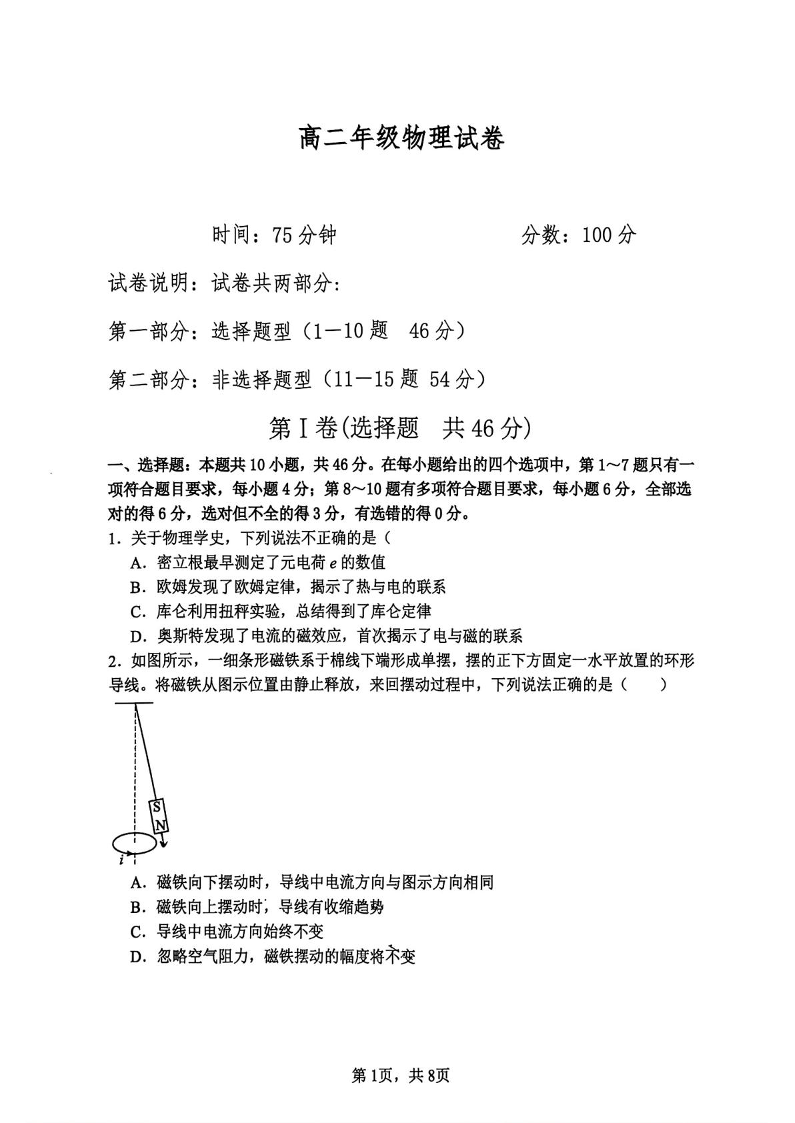 辽宁省沈阳市五校协作体2025-2026学年高二上学期期末考试 物理试题(含答案).pdf