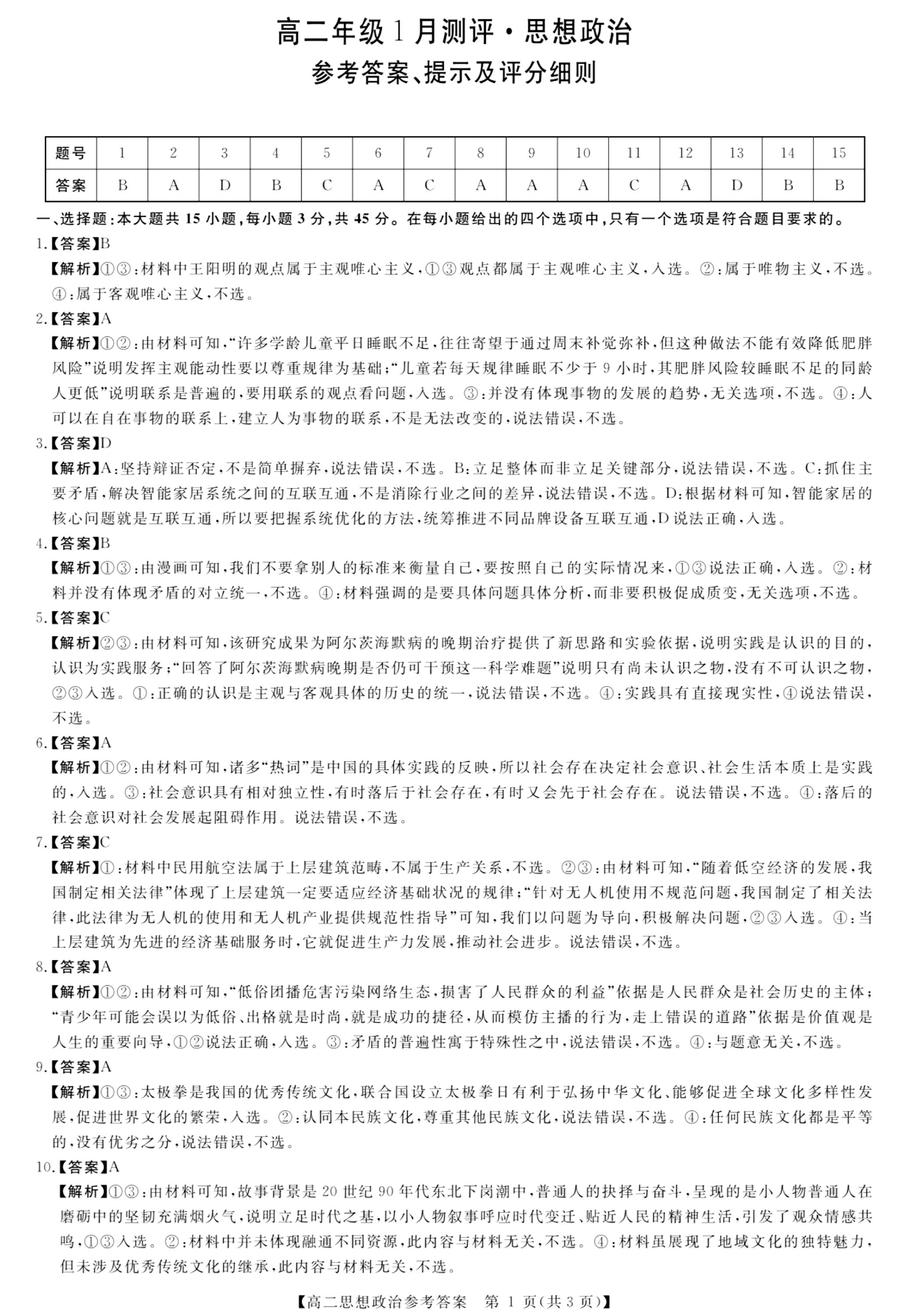 河南新未来联考2025-2026学年高二年级1月测评 政治答案.pdf