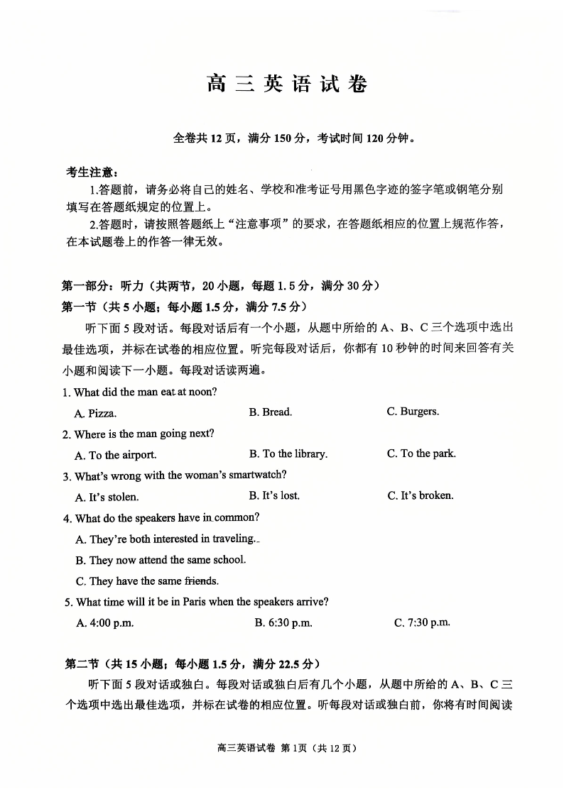 江苏省扬州市2026届高三上学期期末考试 英语.pdf