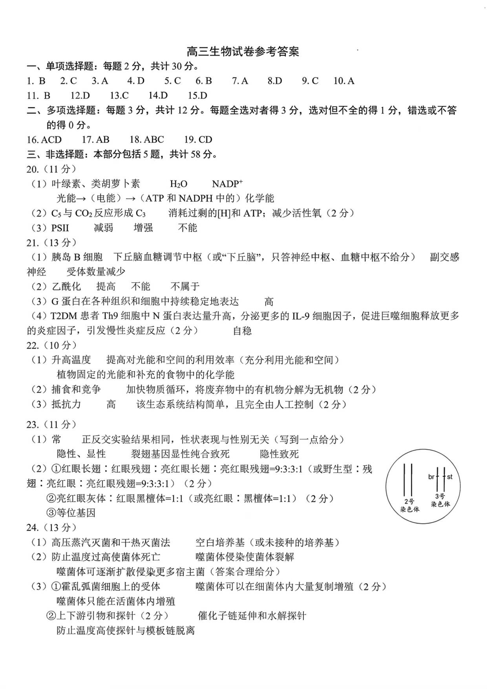 江苏省扬州市2026届高三上学期期末考试 生物答案.pdf