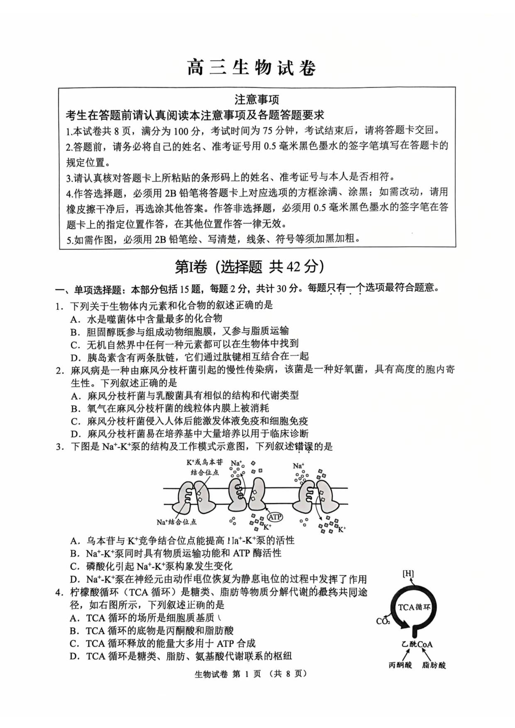 江苏省扬州市2026届高三上学期期末考试 生物.pdf