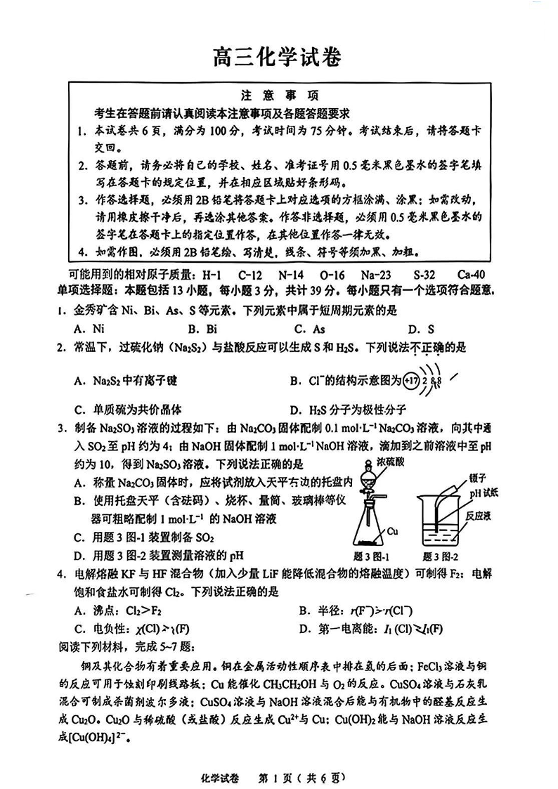 江苏省扬州市2026届高三上学期期末考试 化学.pdf