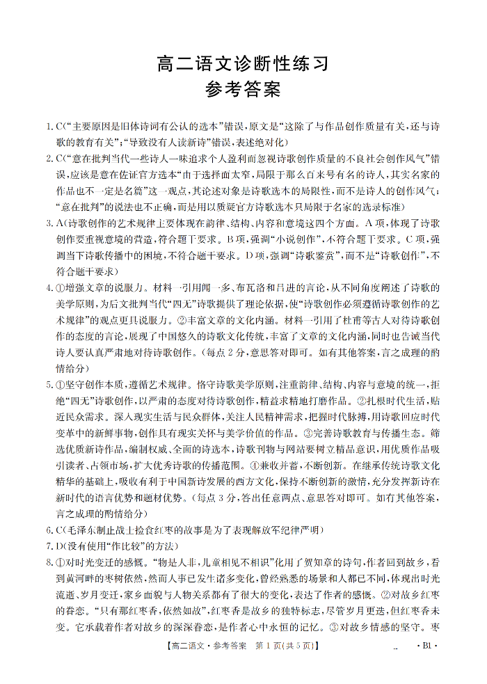 山东省济宁市2025-2026学年高二上学期1月诊断性练习 语文答案.pdf